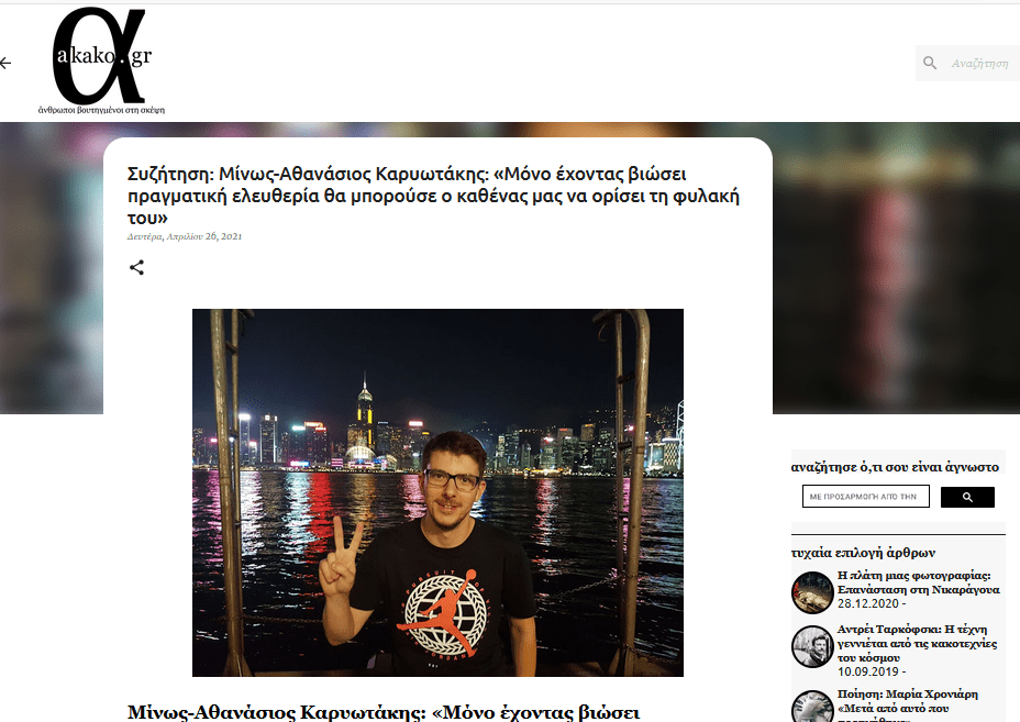 I was interviewed on akako.gr (Greek website) and talked about some of my research work, the experience of living in Hong Kong, and the differences between dealing with Covid-19 in Greece and Hong Kong.